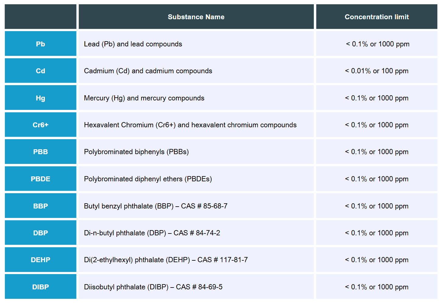 El cumplimiento de la normativa RoHS no se limita a Europa. Muchos países, como China, Vietnam, India, Taiwán, Emiratos Árabes Unidos y Corea, han implementado sus propias restricciones de sustancias peligrosas con requisitos técnicos y de etiquetado únicos. Aunque Eleos no es un laboratorio acreditado, podemos recomendarle socios de confianza que le ayudarán a cumplir con la normativa RoHS de la UE (2011/65/UE) y con las normativas equivalentes de fuera de la UE, garantizando así la aceptación de sus productos en diversos mercados globales.