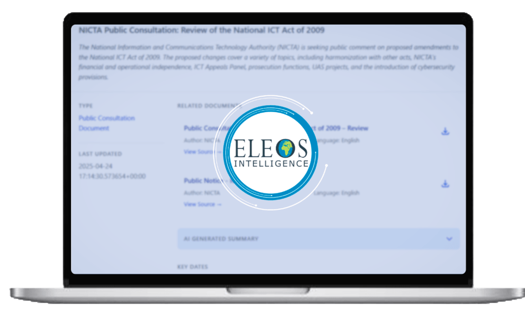 Jeder Datenpunkt wird wöchentlich vom Eleos-Analystenteam aus Regulierungsexperten überprüft, mit einem Zeitstempel versehen und mit seiner ursprünglichen Rechtsquelle verknüpft. Dies verschafft Ingenieuren, Produktmanagern und Compliance-Leitern sofortige Klarheit. Leistungsstarke Vergleichstools, gefilterte Nachschlagevorgänge und ein Live-Feed von Gesetzesentwürfen und öffentlichen Konsultationen ermöglichen es Teams, Risiken zu antizipieren, Designs frühzeitig anzupassen und den Markteintritt zu beschleunigen, ohne sich durch verstreute E-Mail-Threads, Pressemitteilungen oder veraltete Tabellenkalkulationen wühlen zu müssen.